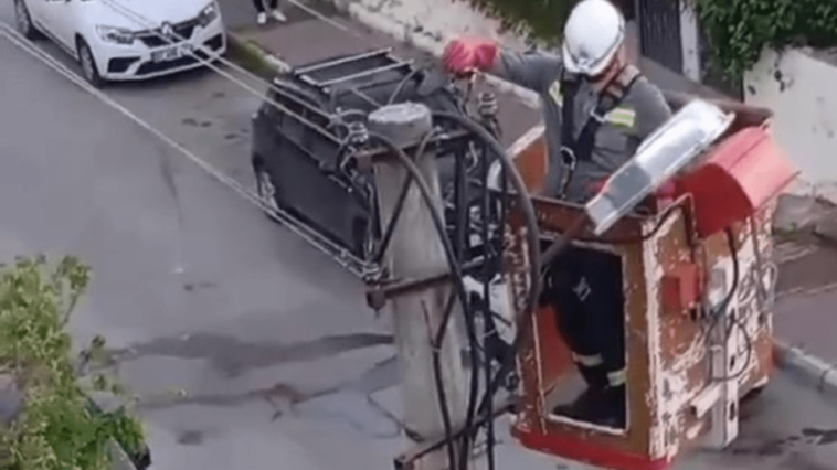 Kuzeyyaka Mahallesi’nde meydana gelen olayda bir kumrunun elektrik tellerine takıldığını ve çaresizce çırpındığını gören vatandaşlar AEDAŞ ekiplerini arayarak yardım istedi. Vatandaşların ihbarı ile belirtilen adrese gelen AEDAŞ ekipleri vinç yardımıyla kumrunun takıldığı elektrik direğine ulaştı. Gerekli güvenlik önlemlerini alan çalışan ayağından tellere dolanan kumruyu bulunduğu yerden kurtardı. Ardından kumrunun durumu kontrol eden görevli vincin aşağıya inmesinin ardından kumruyu bırakarak doğal yaşamına dönmesini sağladı.