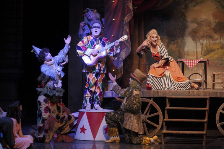 ‘I Pagliacci’ operasında ise kıskançlığı hastalık halini almış, kendisinden oldukça küçük olan karısını ve aşığını sahnede gösteri sırasında öldüren palyaço Canio’nun dramı ele alınıyor.