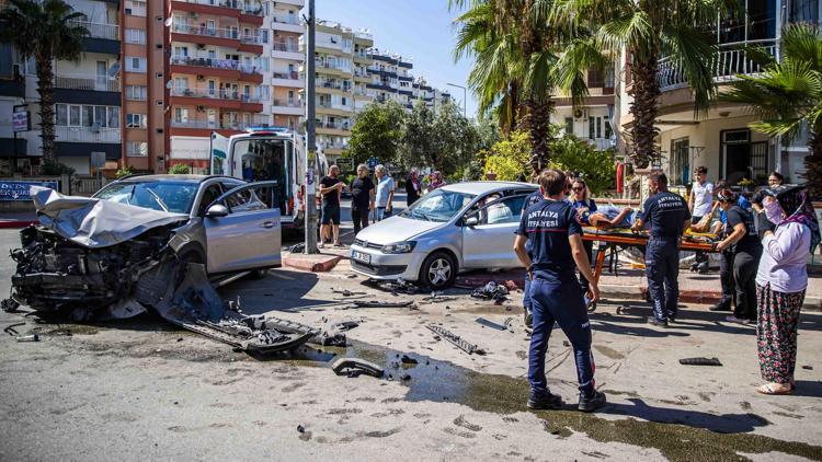 Kaza, saat 14.30 sıralarında Muratpaşa ilçesi Yenigün Mahallesi 1066 ile 1067 sokak kesişiminde meydana geldi. 1067 sokaktan seyir halinde olan Uğur Sarıhan idaresindeki 34 JB 5833 plakalı otomobil ile 1066 sokaktan gelen Ergin Özdemir’in kullandığı 07 AVU 464 plakalı otomobil, sokakların kesişiminde çarpıştı. Çarpışmanın etkisiyle otomobiller yol kenarındaki apartmanın kaldırımına çıktı. Kazayı görenlerin ihbarıyla olay yerine ekipler sevk edildi. Kazada, Uğur Sarıhan’ın yanında bulunan eşi Güngör Sarıhan otomobilde sıkıştı. İtfaiye ekipleri ulaşana kadar Güngör Sarıhan vatandaşlar ve sağlık ekibinin yardımıyla kadını sıkıştığı yerden çıkardı. Sedye üzerine alınan Güngör Sarıhan, ambulansla hastaneye götürüldü. Sürücüler Uğur Sarıhan ile Ergin Özdemir ise kazayı hafif yaralı atlattı.