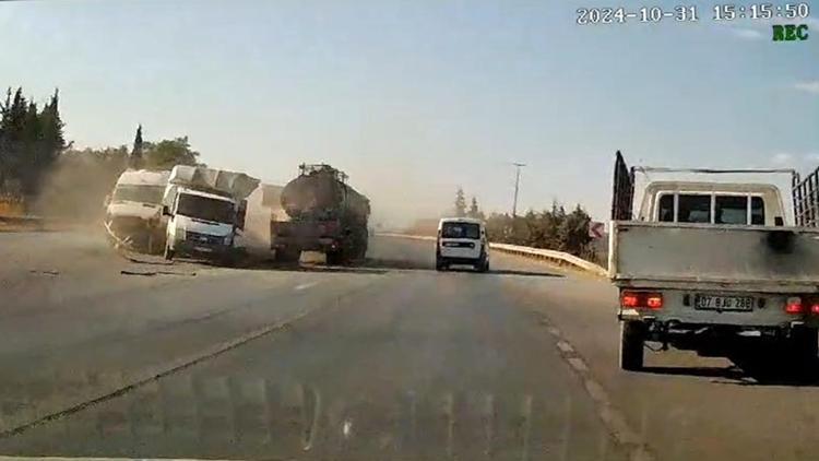 Kaza, dün saat 16.00 sıralarında D-400 kara yolunun Manavgat’a bağlı Taşağıl Mahallesi Güvercinlik Deposu yakınlarında meydana geldi. Ramazan Küçükkara’nın kullandığı Karayolları Genel Müdürlüğü’ne ait 07 VG 640 çekici ve 07 BVY 04 dorse plakalı asfalt TIR ile bölgede bulunan bir zeytinyağı fabrikasından D-400 kara yolundaki kontrolsüz kavşağa çıkan Murat Bozkurt’un kullandığı 07 LPY 92 plakalı kamyonet çarpıştı. Çarpmanın şiddetiyle kamyonet, kavşakta bekleyen Hasan Topçuoğlu’nun kullandığı 07 C 74279 plakalı okul servisine, servis aracı da yanındaki Fatihcan Sarıaydın’ın kullandığı 28 NA 555 plakalı otomobile çarptı.