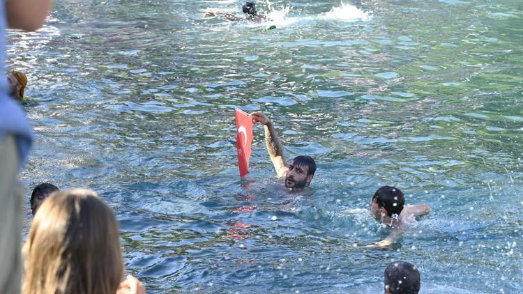 Yağlı kazıkta bayrağı almak için yarışan vatandaşlar dakikalar boyunca ter döktü. Bayrağı almak için bazıları tişörtünü çıkarıp, kazığa koyarken bazıları da kazığa kum attı. Yarış sonunda Muhammet Resul Akkuş bayrağı almayı başardı. Bayrağı aldıktan sonra denizden çıkan Akkuş “Yarış çok güzel geçti. Kazık çok yağlı olduğu ve hava da sıcak olduğu için çok kayıyor. Kazasız belasız bayrağı aldım, çok şükür” diye konuştu. Akkuş bayrağı almak için kazığa kum attığını ve çorap giydiğini de ekledi. Yarışı kazanan Akkuş’a cumhuriyet altını, madalyası ve kupası takdim edildi. Yarışın ardından etkinlikler kapsamında yapılan flyboard gösterisi de heyecanla izlendi. (DHA)