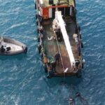 Hurdaya dönen araç, vinç yardımıyla denizden çıkarıldı.