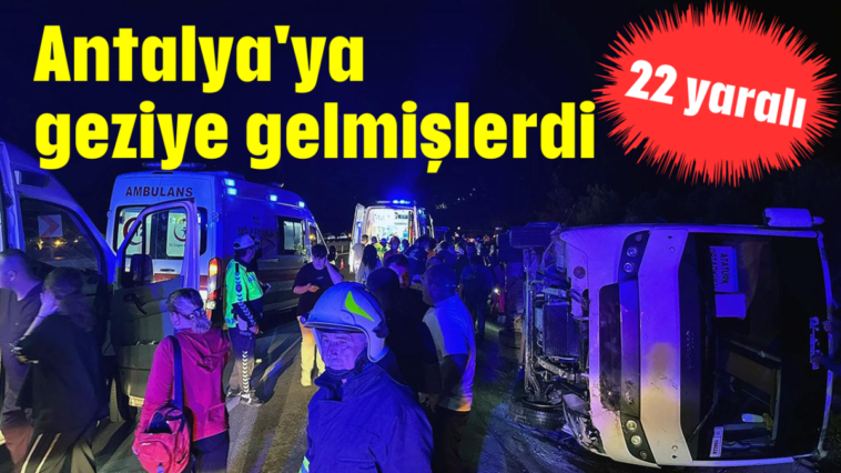 Antalya’ya geziye giden ve Muğla’nın Ortaca ilçesine dönüş yapan içinde 22 öğrenci, 2 öğretmen ve bir sürücünün bulunduğu midibüs, yağışlı havanın etkisi ile Göcek rampalarında sürücünün direksiyon hâkimiyetini kaybetmesi sonucu şarampole yuvarlandı.