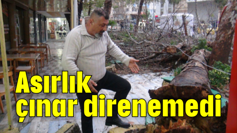 Antalya’nın Serik ilçesinde önceki gün başlayan aşırı yağış ve fırtına, ilçenin sembolü haline gelen asırlık çınar ağacını devirdi. Gece saat 01.30 sıralarında meydana gelen olayda şans eseri can kaybı ya da yaralanma yaşanmadı. Sabah iş yerlerini açmaya gelen esnaf, devrilmiş ağacı fark ederek durumu belediye ekiplerine bildirdi. Olay yerine gelen ekipler, ağacın kaldırılması için çalışmalara başladı.