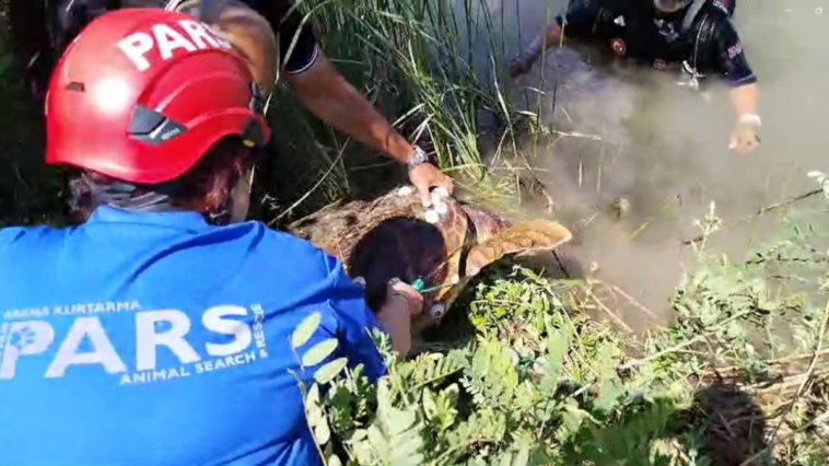 İhbar üzerine bölgeye, PARS Arama Kurtarma, Doğa Koruma ve Milli Parklar Müdürlüğü Av Koruma ekipleri sevk edildi. Olay yerine gelen ekiplerin yaklaşık 2 saat süren çalışmalarının ardından ağa takılan caretta caretta, dalgıç yardımıyla kurtarılarak bulunduğu noktadan kıyıya getirildi.