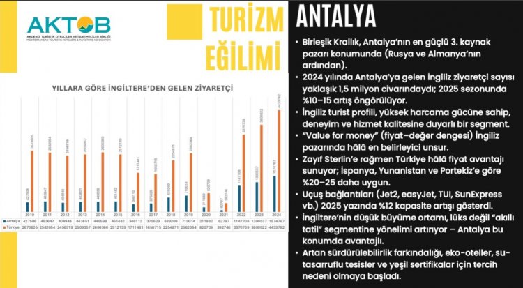 Kavaloğlu, Birleşik Krallık’ın Antalya için en güçlü üçüncü kaynak pazar olduğunu hatırlatarak, 2024 yılında yaklaşık 1,5 milyon İngiliz turistin Antalya’yı ziyaret ettiğini açıkladı. 2025 sezonunda bu sayının %10–15 oranında artmasının öngörüldüğünü belirtti.