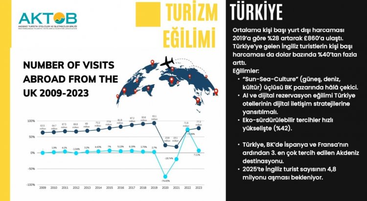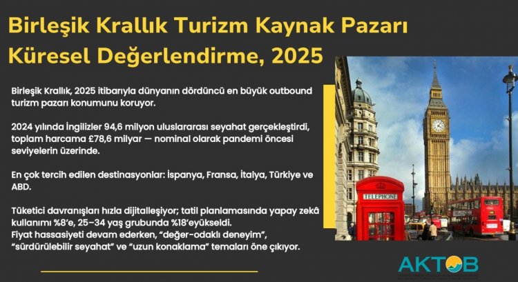 Akdeniz Turistik Otelciler ve İşletmeciler Birliği (AKTOB) Başkanı Kaan Kavaloğlu, Birleşik Krallık ve İngiliz turist pazarı üzerine önemli açıklamalarda bulundu. Kavaloğlu, 2025 itibarıyla Birleşik Krallık’ın dünyanın dördüncü en büyük outbound turizm pazarı konumunu koruduğunu belirtti.