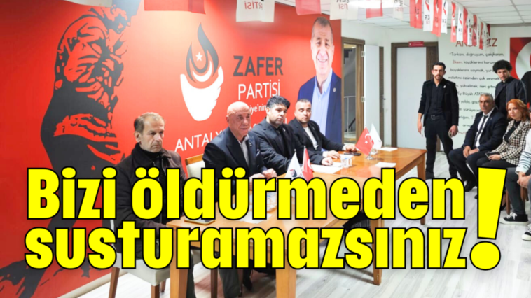 Zafer Partisi Genel Başkanı Ümit Özdağ’ın tutuklanmasına yönelik tepkiler devam ediyor. Zafer Partisi Antalya İl binasında basın toplantısı düzenleyen Teşkilat ve Yerel Yönetimlerden Sorumlu Genel Başkan Yardımcısı Musa Ertugan, “Bu haksız ve hukuksuz tutuklama kararına karşı tüm teşkilatımız, üyelerimiz ve vatansever Türk milleti Prof. Dr. Ümit Özdağ’ın yanındadır.” Türkiye Cumhuriyeti’ni bir avuç rantçının, bölücülerin ve çıkarcıların eline teslim etmeyeceklerini belirten Ertugan, “Bizi öldürmeden susturamazsınız” dedi.