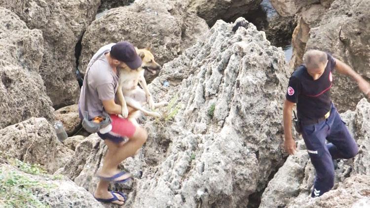 Antalya’nın Muratpaşa ilçesinde Fatih A.’nın gezdirmek için Karaoğlan parkına götürdüğü köpeği bir anda tasmasından kurtularak falezlerin olduğu yere doğru koştu. Kayalıkların ucunda duran köpek dengesini kaybederek 20 metre yükseklikten aşağı düştü. Sahibinin ihbarı üzerine bölgeye itfaiye ve deniz polisi ekipleri sevk edildi. Olay yerine gelen itfaiye ekipleriyle köpeğin bulunduğu yere inen sahibi Fatih A., dakikalarca elindeki şapkasıyla köpeğini serinletmeye ve sakinleştirmeye çalıştı. Deniz polisi, köpeği ve sahibini bota bindirerek Kaleiçi Deniz Liman Şube Müdürlüğü’ne götürdü.