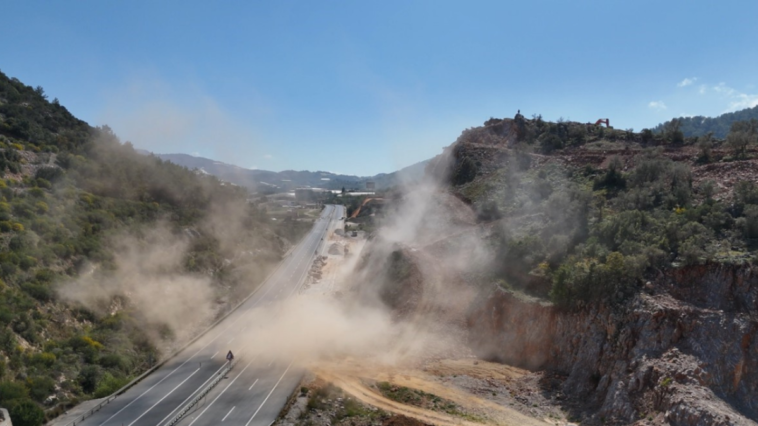 Alanya’nın Uğrak Mahallesi D-400 kara yolu Yeşilöz Kavşağı-Kaledran yolunda geçtiğimiz günlerde kara yolu yapımında kullanılmak üzere taş temini için dağ patlatılmıştı. Dün sabah saatlerinde ise yine aynı yerde kara yolunda kullanılmak üzere dağ ikinci kez kontrollü olarak patlatıldı. Dağdan düşen kaya parçaları yola düşerken, Jandarma ve polis ekipleri kara yolunu patlatma esnasında trafiğe kapattı.