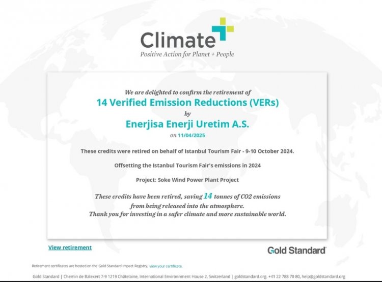 Uluslararası düzeyde kabul gören REC (Renewable Energy Certificate), elektrik tüketiminin yenilenebilir enerji kaynaklarından karşılandığını belgeleyen ve kurumlara çevresel sorumluluklarını yerine getirme konusunda önemli bir fırsat sunan bir sistemdir. İstanbul Turizm Fuarı, bu gönüllülük esasına dayalı girişimiyle hem doğal kaynakların sürdürülebilirliği hem de yeşil enerji dönüşümüne katkı sağlama açısından sektöre örnek teşkil etti.