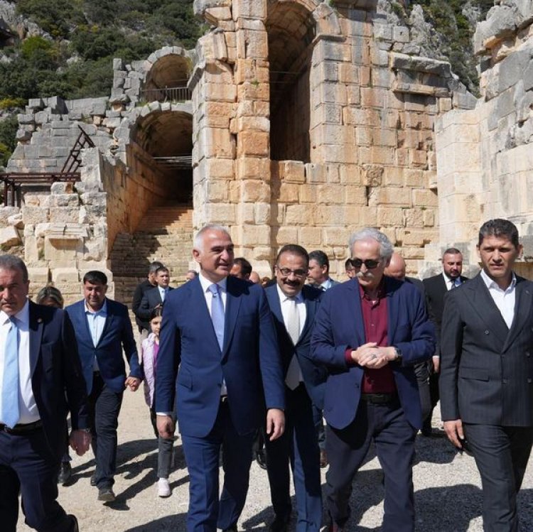 Bakan Ersoy, Antalya’nın Demre ilçesindeki Myra Antik Kenti’nde düzenlenen programda, “Geleceğe Miras Myra ve Limanı Andriake Projesi“ni tanıttı.