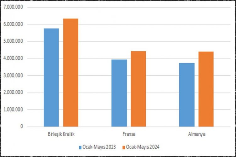 Bu dönemde ülkeye en çok turist girişi 6,35 milyonla İngiltere’den sağlandı. Onu 4,4 milyonluk seviyelerle Fransa ve Almanya izledi.