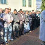 Anadolu Gençlik Derneği Alanya Temsilciliğince organize edilen gıyabi cenaze namazına katılanlar, Fatma Zehra Köroğlu Camisi avlusunda saf tuttu.