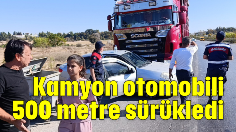 Kaza, Antalya’nın Manavgat ilçesi D-400 karayolu üzerinde meydana geldi. Edinilen bilgiye göre, Alanya istikametinden Manavgat istikametine seyir halindeki Abdülkadir Akkoyun’un kullandığı 01 FA 566 plakalı kamyon Kızılağaç kavşağını 100 metre geçtikten sonra aynı istikamette gitmekte olan Mehmet Uçar’ın kullandığı 07 TDJ 47 plakalı otomobile çarparak önünde yaklaşık 500 metre sürükledi.