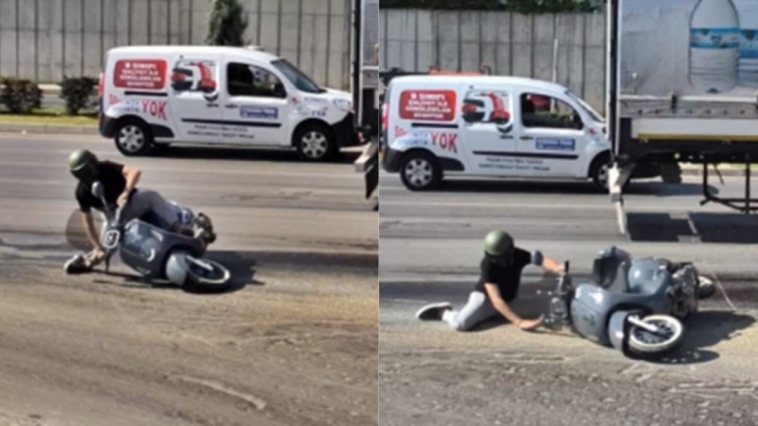 MOTOSİKLETLİNİN YOLA SAVRULDUĞU ANLAR KAMERAYA YANSIDI