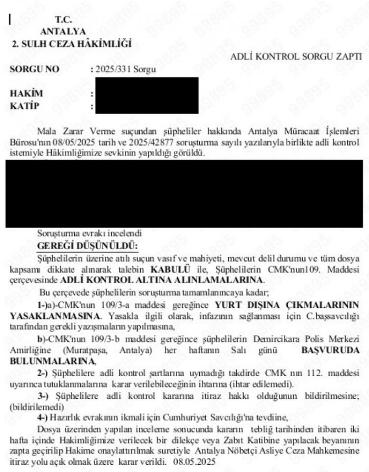 Misafirlerin savcılıktaki ifadelerinde, yaptıkları hatayı kabul ettikleri ve pişman olduklarını beyan ettikleri öğrenilmiştir. Ancak, adli merciler, söz konusu zararın ödenmemesi durumunda telafisinin mümkün olamayacağı gerekçesiyle yurt dışına çıkış yasağı getirmiştir” denildi.