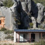 Binlerce yıllık kaya mezarın önüne ev yaptı