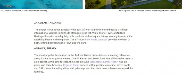 Kemer’den Maxx Royal Kemer Resort ve Belek’ten Regnum Carya, dünyanın en özel noktaları arasında gösterildi.