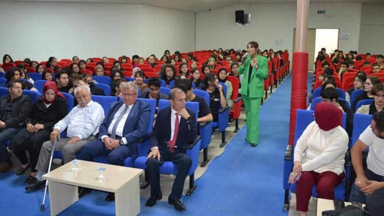 Korkuteli Fatma Mehmet Cadıl Fen Lisesi’nde yazar Eylül Ayça Karakuş, ‘Hayatının Yazarı Sensin’ adlı söyleşiye katıldı. Etkinliğe İlçe Milli Eğitim Müdürü İbrahim Canbazoğlu, okulun banisi iş insanı Mehmet Cadıl, Okul Müdürü Erkan Süha Doğrul, müdür yardımcıları ve öğrenciler katıldı. Yazarın ‘Adın Ömrüme Hatıra’ ve ‘Ne Çok Şey Var Bir Bilsen’ kitaplarını inceleyen öğrenciler, söyleşinin ardından yazarla düşüncelerini paylaştı. Söyleşide yazara kitap yazmanın zorlukları ve kitap yazmaya devam edip etmeyeceği de sorular arasında yer aldı. (DHA)