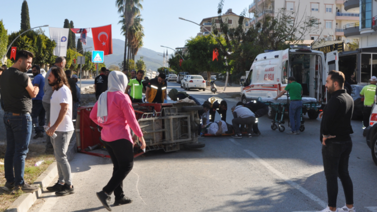 Olay, saat 09.30 sıralarında Pazarcı Mahallesi Uğur Mumcu Caddesi’nde meydana geldi. Sahil istikametinden ilçe merkezi istikametine seyir halinde olan Mustafa Ç. idaresindeki 07 BHG 430 plakalı otomobil, aynı yönde hareket halindeyken sola dönüş yapmak isteyen Kadir Akay idaresindeki üç tekerlekli elektrikli bisikletle çarpıştı. Elektrikli bisikletin yan yattığı kazada sürücü Kadir Akay ile yolcu olarak bulunan Medine Akay yaralandı. Çevredekilerin ihbarı üzerine olay yerine sağlık ekipleri ve polis sevk edildi. Yaralılara ilk müdahale olay yerinde yapıldı. Yaralılar Gazipaşa Devlet Hastanesi’ne götürülüp tedaviye alındı. Polis kazayla ilgili inceleme başlattı.
