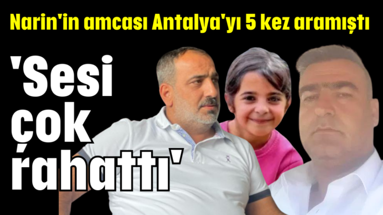 Narin Güran cinayetine ilişkin Diyarbakır Cumhuriyet Başsavcılığı tarafından yürütülen soruşturma sürerken, tutuklu bulunan amca Salim Güran’ın olay günü telefonla 5 kez görüştüğü kişiye DHA ulaştı. Amca Salim Güran’ın, en son 15.15’te okulun güvenlik kamerasına görüntüleri yansıyan Narin’in ortadan kaybolduktan sonra Antalya’daki bir cep telefonunu aradığı, 16.43 ile 17.59 saatleri arasında 1 saat 16 dakika içinde 5 kez görüştüğü saptandı.