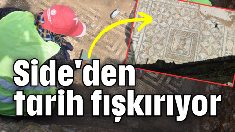 Kültür ve Turizm Bakanlığı tarafından hayata geçirilen Geleceğe Miras projesi kapsamında Side Antik Kenti’nde 2023 yılında başlatılan kazı ve restorasyon çalışmaları devam ederken, yeni keşifler ve bulgular gün ışığına çıkıyor. Side Antik Kenti kent kapısı ve kara surlarının ardında yer alan Anıtsal Çeşme bölgesinde devam eden restorasyon ve arkeolojik çalışmalarda bulgular ortaya çıktı. Anıtsal Çeşme’nin arkasındaki su kemerlerinin keşfiyle genişletilen kazı alanında, şairlere ilham kaynağı olan epik şiirin esin perisi Kalliope’nin betimlendiği bir mozaik zemin bulundu.