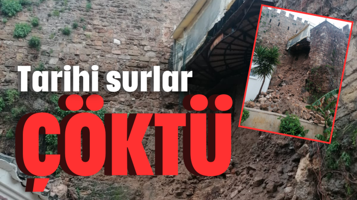 Antalya’nın çekirdek kenti tarihi Kaleiçi Yat Limanı’nda Aynalı Restoran’ın arkasındati tarihi surlarda da çökme oldu.