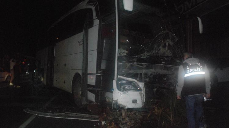 Kaza, akşam saatlerinde meydana geldi. Manavgat’tan Serik ilçesi istikametine seyinr halinde olan Hüseyin Köle yönetimindeki 07 BKP 115 plakalı tur otobüsü, kavşaktan geçmeye çalışan Ali Yılmaz yönetimindeki 07 AKH 810 plakalı otomobille çarpıştı. Otomobili yaklaşık 20 metre sürükledikten sonra refüjdeki palmiye ağacını devrilen otobüs, karşı şeride geçip kaldırıma çarparak durabildi.
