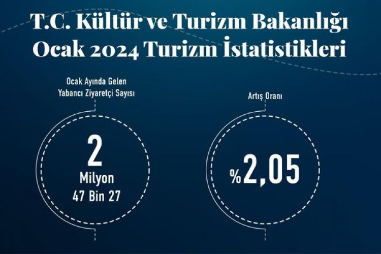 Turizmde 2023 yılını rekorla kapatan Türkiye, ocak ayı yabancı ziyaretçi sayısında, bir önceki yılın aynı ayına göre yüzde 2,05 artış yaşadı.
