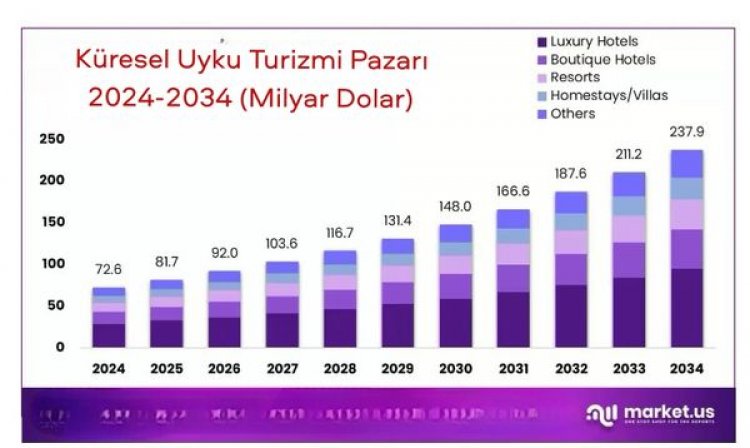 2024’te uyku Turizminde lider bölge Kuzey Amerika olup, ABD 25,4 milyar dolarlık gelirle pazarın yüzde 35,1’ini elinde bulunduruyor.